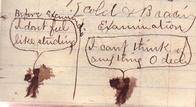 | Tuesday, Sept. 27 My right hand little finger is sore. I was playing ball and a ball hit me square on the end of it. Went to school as usual. Did not know any algebra and Miss Ecking was very economical in her praise. Nan got mad at me for following her example in putting out gaslights and Lida gave me a scolding for pulling the grapes off of the vine. Bad day! Bad day! Wednesday, Sept. 28 I received a letter today from my father who is out West. 8 pages long, 6 pages descriptive and 2 private. The six I have handed over to the State Gazette and if they think worth while are going to publish them. Raymond is sick and the doctor says it is fever on the bowels at least that is what I think he said. I commenced a letter to Pa and Ma but was compelled to stop because I could not send it saying all was well and I did not want to say Raymond is sick. Tomorrow morning I am going to send and tell how R. is anyway. Methodist convention meets here for 3 days. Uncle Ed and Mr. Slanger will stop here. Studied 2 hours on my lessons tonight. Thursday, Sept. 29 First rate day at school been perfecting (?) all my lessons. In the Algebra all were absent by myself and I did every Ex. And explained them all alone. I got through the lessons a thing we have not done once this yr. Sent my letter to Pa and Harry received one. I gave my ball and some cream-puff to J.O.R. for his Andrews Latin Reader and I translated one of Aesop's Fables and an anecdote of Lycurgus. Raymond is better a great deal and I am very glad of it. Went down to Taylor Hall to the Convention Meeting went 2S. Weather cloudy but no rain. Friday, Sept. 30 Today has been both sorrowful and joyful. Raymond seemed better this morning and then this afternoon was a great deal worse and if he had been no better tomorrow we were going to telegraph to Pa and Ma but the doctor came tonight. He said R. was no worse and there was no need of sending for them that he would be better in a few days and if it became necessary he would tell us when to send. This afternoon for about 5 minutes I had charge of the boys in the Room at school. I had to administer a little severe punishment to one boy before he came to terms. I was glad when I saw the teacher come. Nan went to Phila. To find her mother and bring her to Trenton. Was the only one in the Algebra Class today. Got through the whole lesson. Translated one more of Aesop's fables. Weather rainy and very wet. |